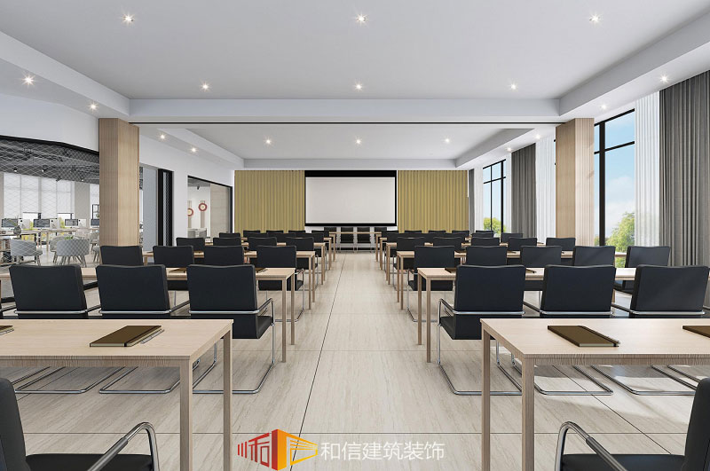 會(huì)議廳作為智慧的充電站,是集學(xué)習(xí)、黨建活動(dòng)于一體的智能空間,桌椅整齊有序地?cái)[放,營造出濃厚的學(xué)習(xí)氛圍,結(jié)合燈光的控制,線與面交織延伸,時(shí)尚又不失莊嚴(yán)。