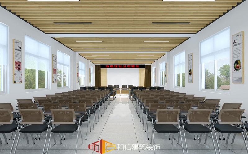 會(huì)議室椅子整齊地排列,給人一種穩(wěn)重大氣的感覺,兩邊墻面窗戶設(shè)計(jì),看似簡(jiǎn)單,卻將室外的光線和景觀引入室內(nèi),在會(huì)議或者活動(dòng)的同時(shí)還有美景相伴,減少了壓抑感。